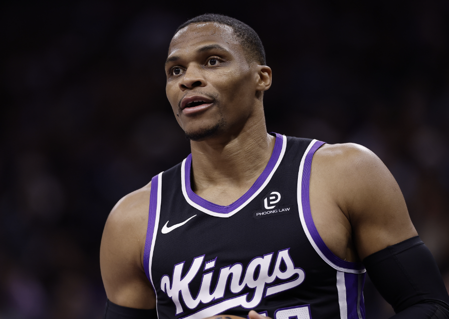 球进之后,威少还瞥了一眼远处湖人板凳席上的詹姆斯,完全不给他面子,就是要打他的脸。都知道之前的故事,威少说詹姆斯虚伪,早就看不惯他给自己设下的伪君子人设了,现在看起来两人确实是有故事的,每次一碰到詹皇的球队,威少的都往死里打,整个半场的发挥已经比他之前加入国王这两场以来全场的表现都好了。